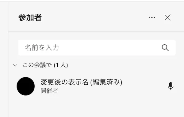 表示名の変更は,会議の開始後に行うことができます.変更すると,その会議の間は,変更後の表示名が表示されます.