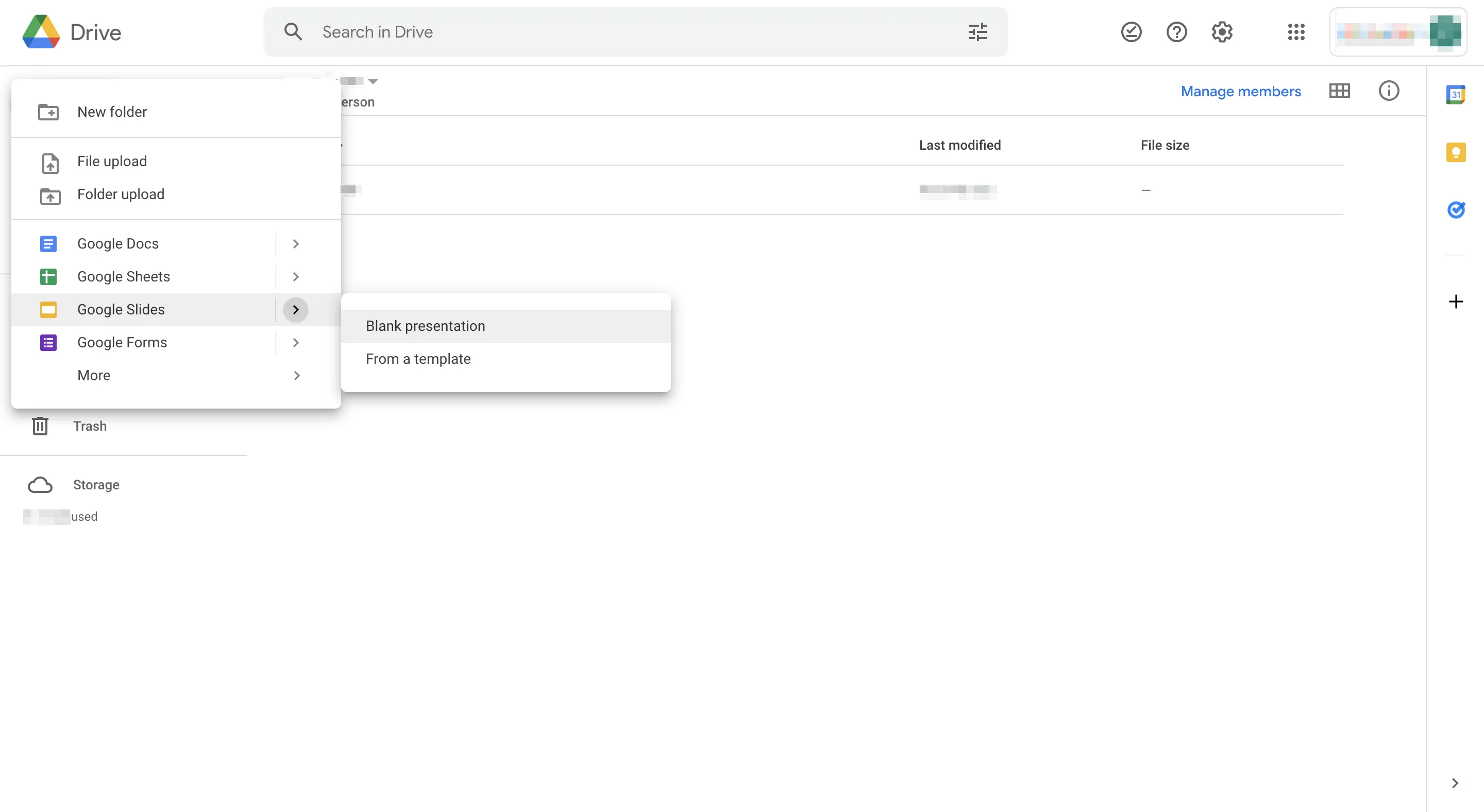 4. How to share documents: Open the shared folder, click the “New” button on the upper left, and then select the google tool you want to use.