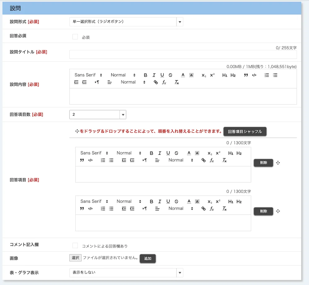 • 画像:設問の添付画像を登録できます.形式はgif,jpg,pngのいずれかにしてください.