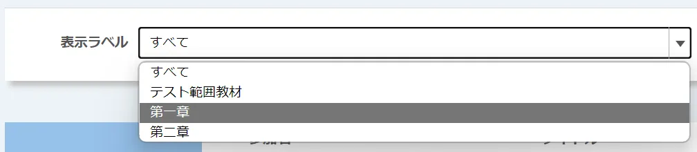 • ラベルを付与すると,「コーストップ」画面で以下のようなドロップダウンリストが表示され,履修者・教員の双方がラベル毎にコンテンツを表示できます.